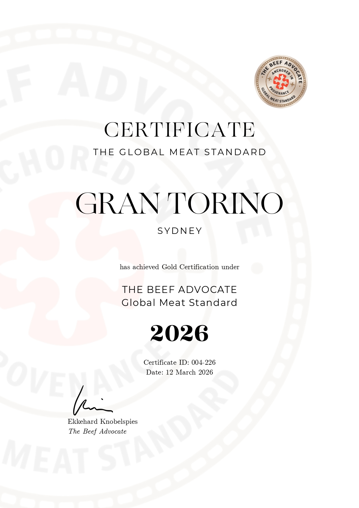 The Global Meat Standard Certificate